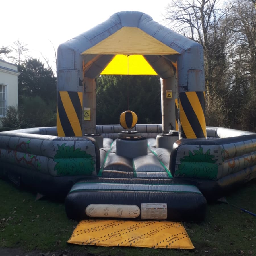 The Human Demolition game requires a space of 25ft x 25ft and is versatile enough for both indoor and outdoor setups, on hard standing or grassed areas. This makes it a perfect fit for a wide range of events, ensuring participants of all ages can enjoy the exhilaration of evading the wrecking ball, making it a standout attraction at your event.