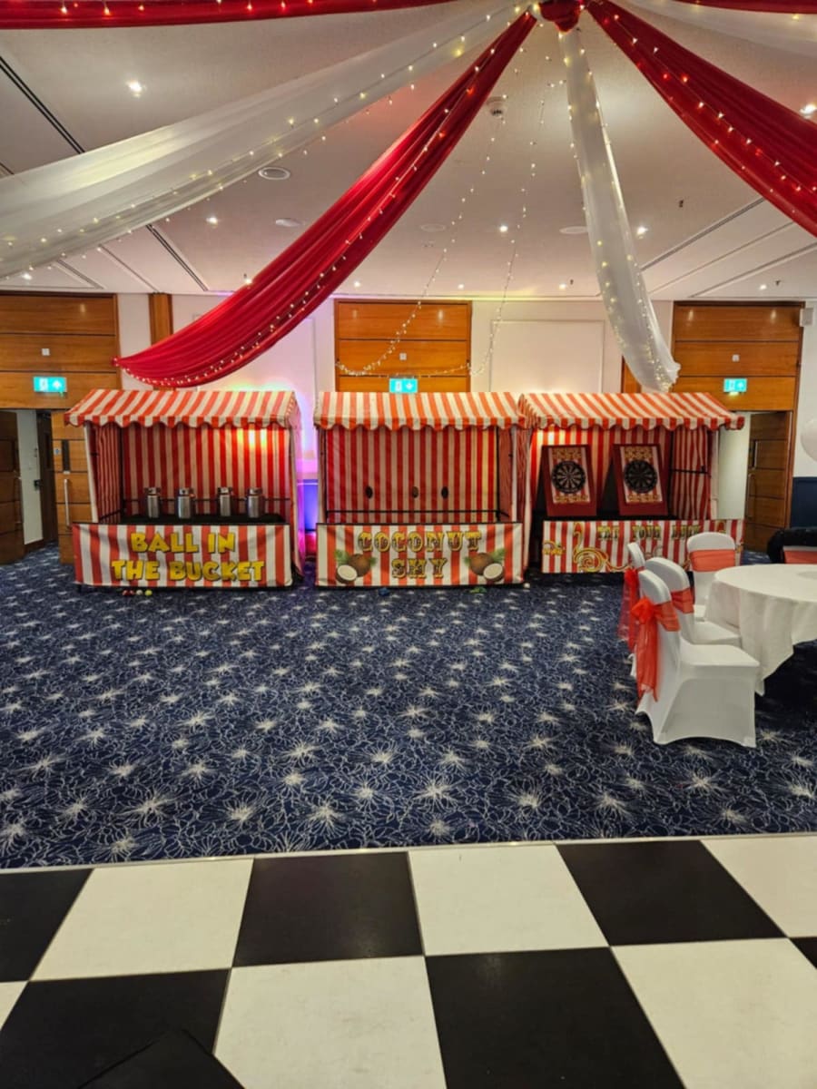 Our traditional fun fair Stall hire will make any event fun we have a large range of different games to suit all ages. With the traditional red and white stripe theme these look great at any event, be it a indoor or an outdoor event. These wonderful stalls have attended all kinds of events from weddings, to birthday parties to corporate dinners and even a well known television programme in 2018! I don't know what it is with these side stalls but something about them brings out the child in you at a funfair trying your luck at the challenging game.